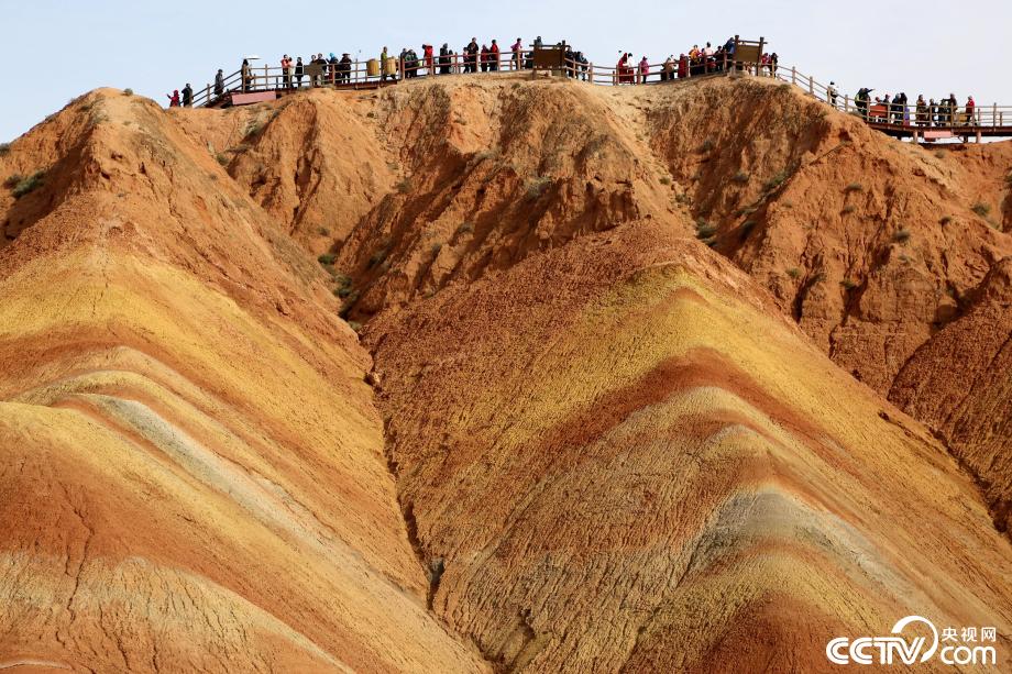 央視網(wǎng)消息:2019年10月15日,金秋時節(jié),位于甘肅省張掖市臨澤縣的七彩丹霞景區(qū)進(jìn)入旅游旺季,吸引眾多游人紛至沓來。張掖七彩丹霞景區(qū),分布面積約50公里,是中國北方干旱地區(qū)發(fā)育最典型的丹霞地貌。在方圓數(shù)十平方公里的范圍內(nèi),隨處可見有紅、黃、橙、綠、白等多種鮮艷的色塊或線條,把一座座山峰,一條條溝壑,裝點(diǎn)成一幅幅絢麗多姿、燦爛奪目的畫圖。圖片來源:視覺中國