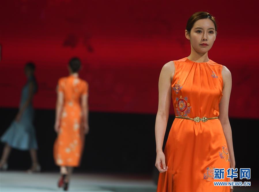 10月16日,模特在展示婚慶禮服。 當日,“愿·緣·圓”上久楷婚慶主題秀在江蘇省蘇州市吳江區(qū)盛澤鎮(zhèn)舉行。新華社記者 季春鵬 攝