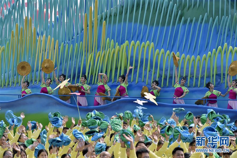 10月1日上午,慶祝中華人民共和國成立70周年大會在北京天安門廣場隆重舉行。這是群眾游行中的“綠水青山”方陣。 新華社記者 周華 攝