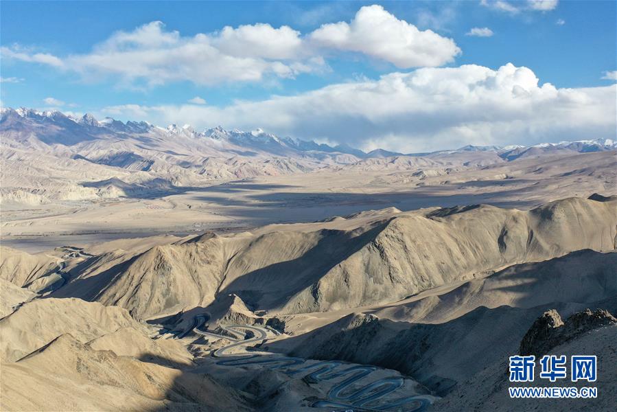 這是10月20日無人機(jī)拍攝的新疆塔什庫爾干塔吉克自治縣吾格亞提盤山公路。新華社記者丁磊攝