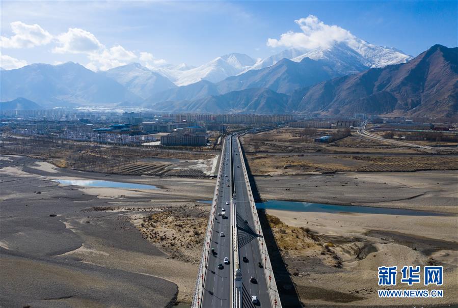 這是拉薩市內(nèi)公路(4月3日無人機拍攝)。 新華社記者 普布扎西 攝