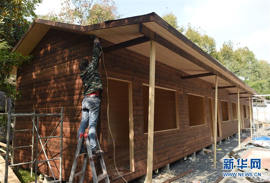 10月24日,一名工人在對班竹村新建的旅游設(shè)施進行外部裝修。新華社記者韓傳號攝