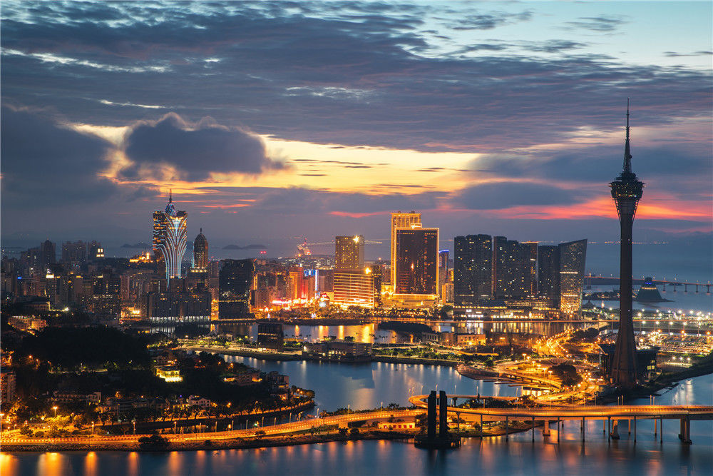 2018年6月16日,澳門,城市風(fēng)光。遠(yuǎn)處的港珠澳大橋。徐小天/視覺中國(guó)