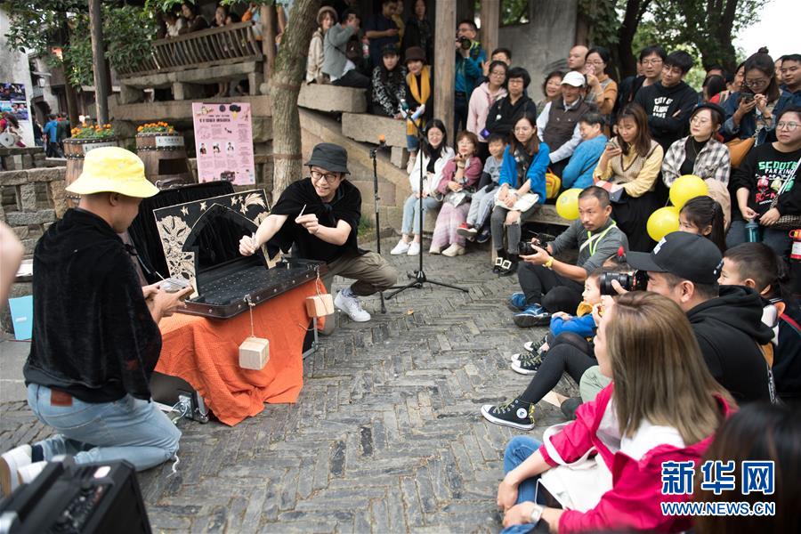 10月26日,觀眾在烏鎮(zhèn)街頭觀看戲劇表演。 新華社記者翁忻旸攝