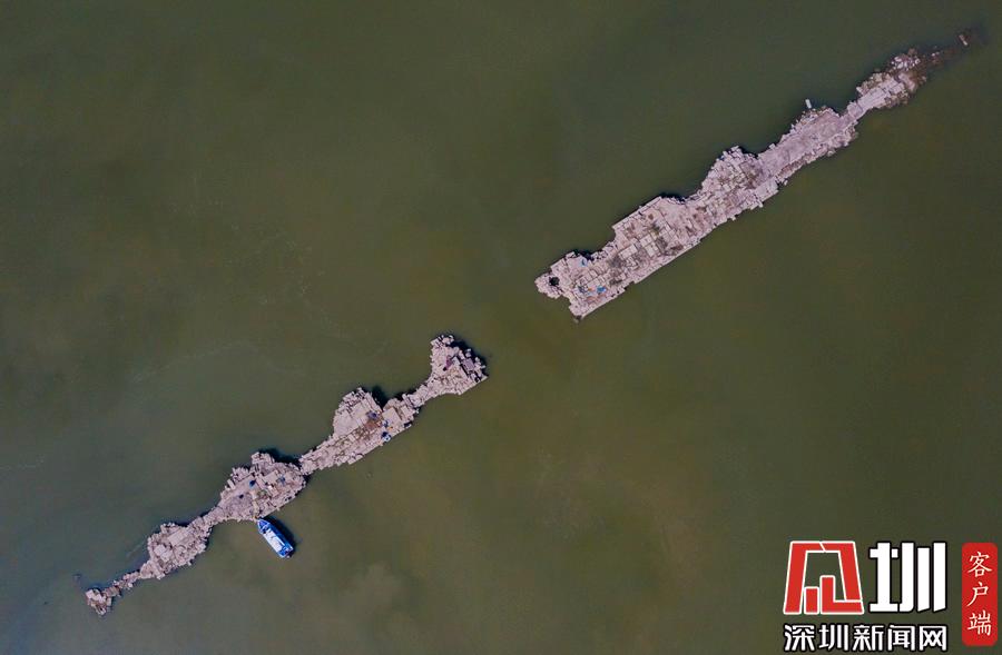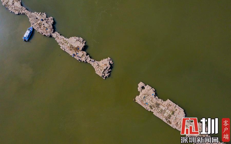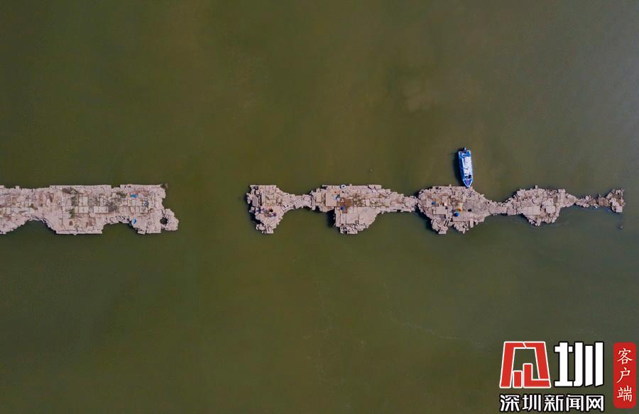 鄱陽湖水位持續(xù)走低湖底600年古橋露真容