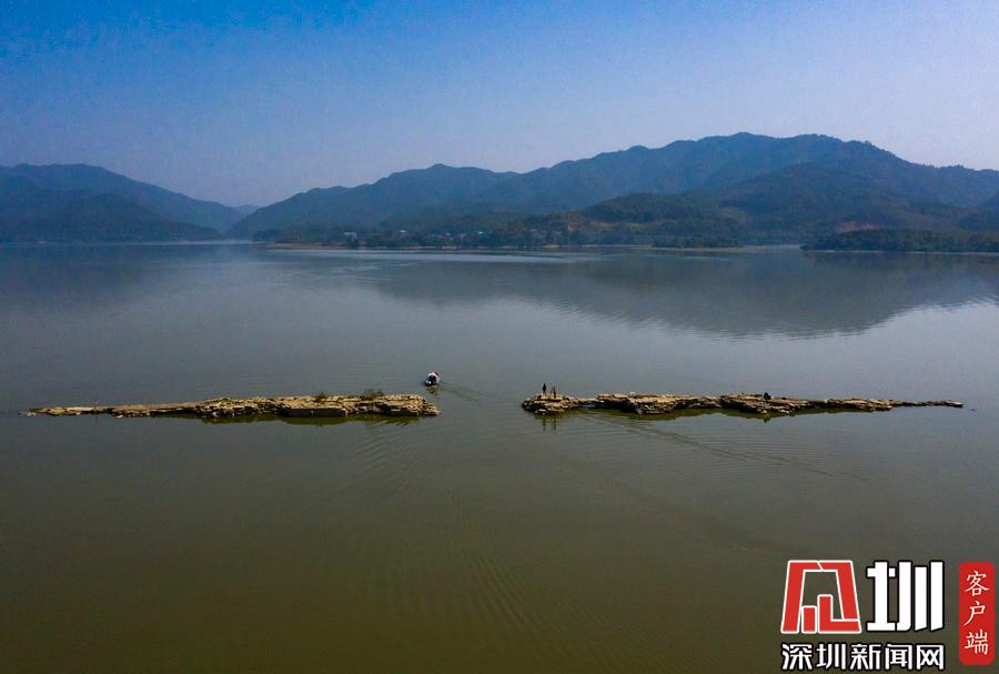 2019年10月30日,江西仙女湖旅游股份有限公司測量人員乘坐工作船對明代萬年橋進行測量,該橋橋身凸出水位最高處達1.64米。