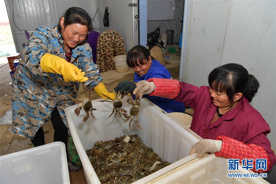 江西省南昌市新建區(qū)象山鎮(zhèn)河林村的農(nóng)戶正在清洗剛捕撈的大閘蟹,準(zhǔn)備裝箱外銷(10月29日攝)。 新華社記者 彭昭之 攝