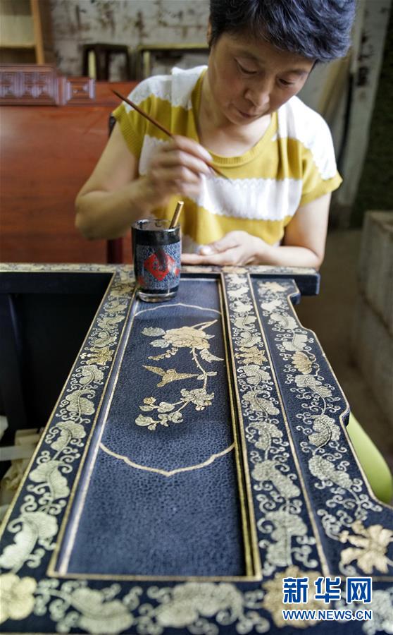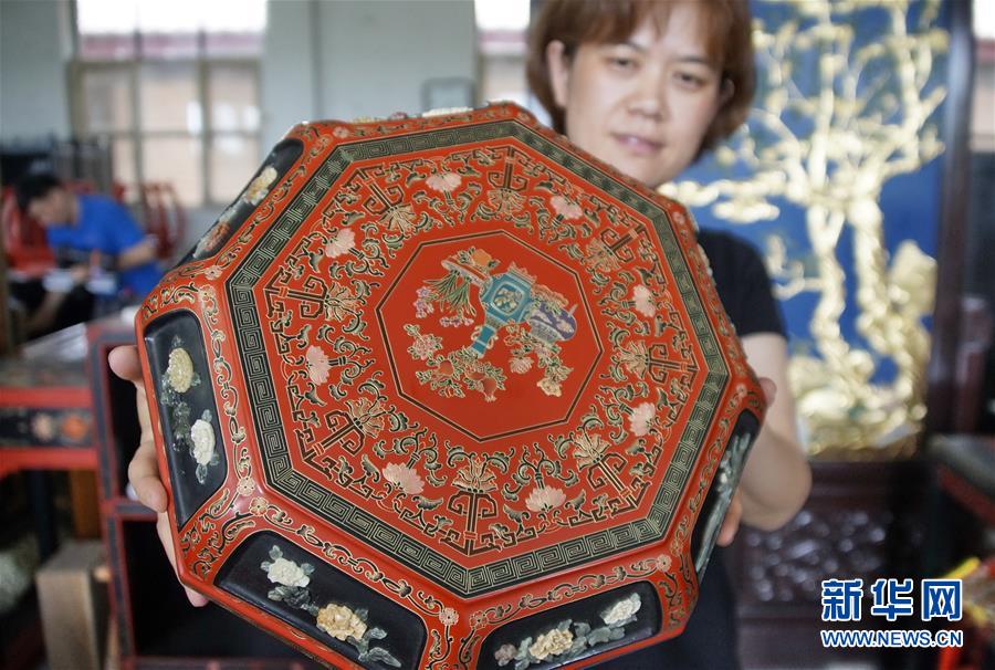這是北京金漆鑲嵌有限責(zé)任公司技師制作的金漆鑲嵌作品(10月31日攝)。新華社記者李欣攝