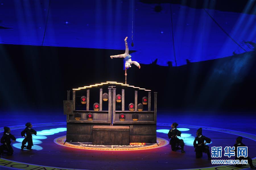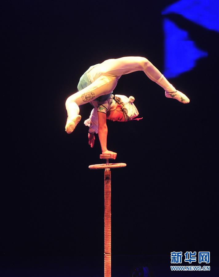 11月3日,來(lái)自埃塞俄比亞的演員在表演《蹬技》。 當(dāng)日,第十七屆中國(guó)吳橋國(guó)際雜技藝術(shù)節(jié)滄州會(huì)場(chǎng)世界雜技精品惠民展演在河北省滄州市體育館舉行。中國(guó)吳橋國(guó)際雜技藝術(shù)節(jié)創(chuàng)辦于1987年,每?jī)赡昱e辦一屆,是我國(guó)雜技藝術(shù)領(lǐng)域舉辦歷史最長(zhǎng)、規(guī)模最大、影響最廣的國(guó)家級(jí)藝術(shù)賽事和文化節(jié)慶活動(dòng)。  新華社記者 牟宇 攝