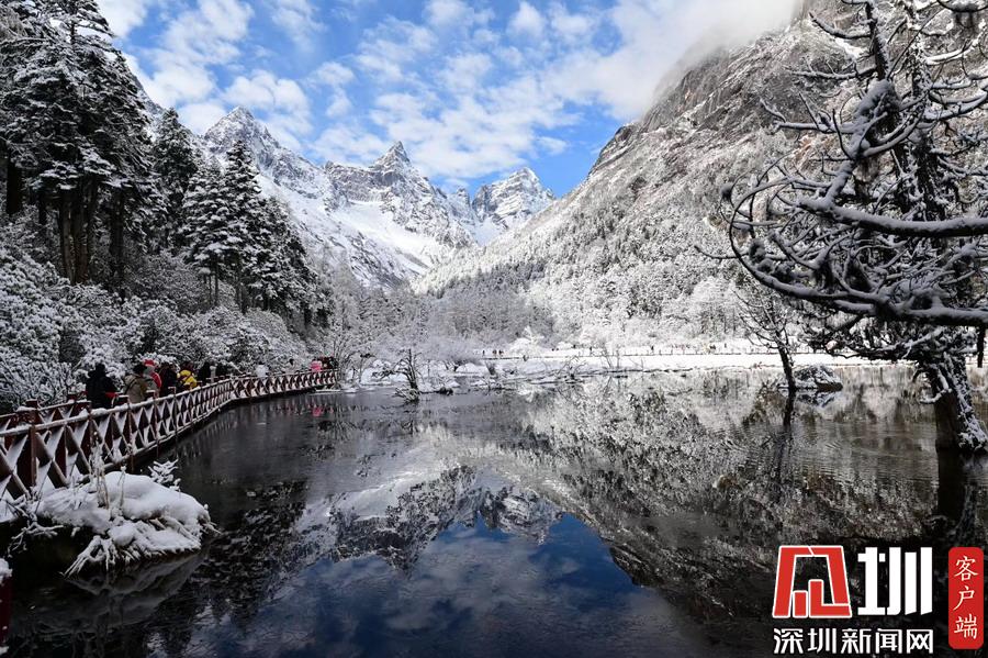 四川畢棚溝降雪 一夜美成天堂