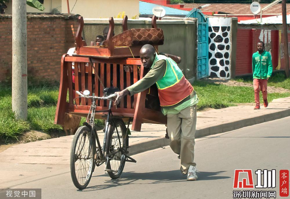 實拍靠自行車賺錢的剛果生意人,貨物堆積如山,畫面驚險