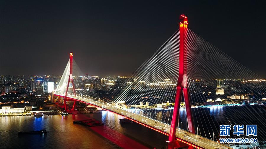 上海楊浦大橋(9月23日無(wú)人機(jī)拍攝)。  新華社記者 丁汀 攝