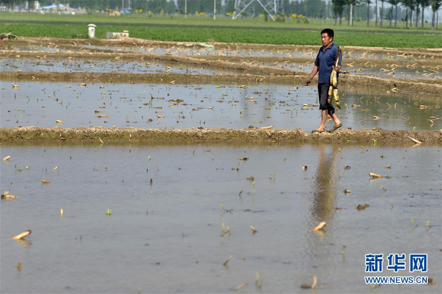 5月14日,河北省隆堯縣東良鎮(zhèn)澤畔村的農(nóng)民在種植蓮藕。新華社記者牟宇攝