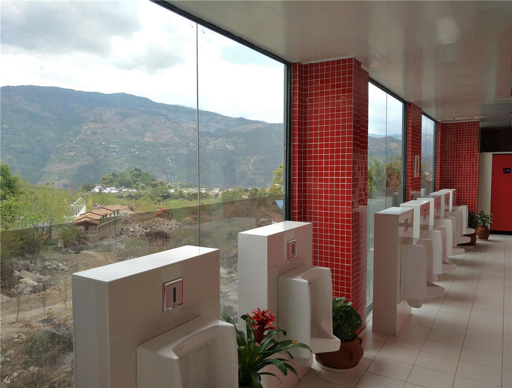 2017年4月7日,云南省大理州石門關(guān)景區(qū)的透明廁所。廁所外觀落地玻璃采用單透膜,讓游客邊上廁所,還可以邊欣賞景區(qū)優(yōu)美的風景。李明/視覺中國