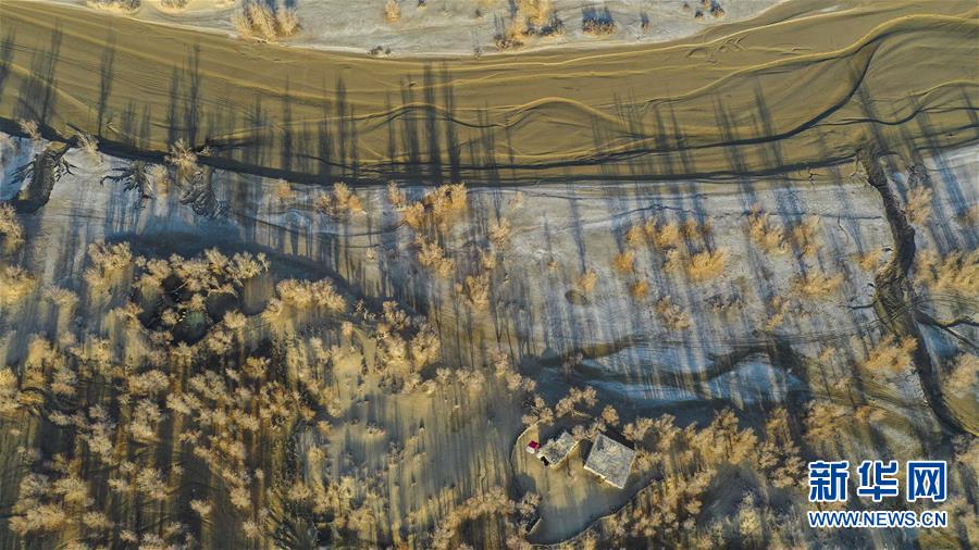 這是在克里雅河沿岸拍攝的一處民居(11月16日無人機(jī)拍攝)。 新華社記者 胡虎虎 攝
