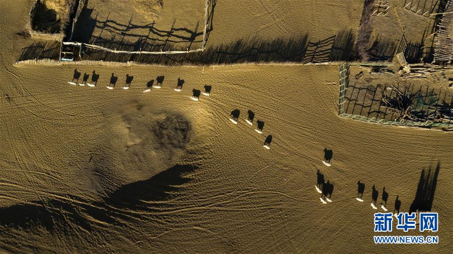 這是在克里雅河沿岸綠洲達(dá)里雅布依拍攝的羊群(11月13日無人機(jī)拍攝)。 新華社記者 沈伯韓 攝