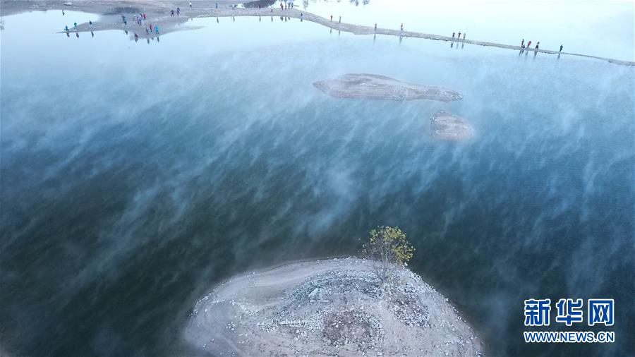 這是11月14日無(wú)人機(jī)拍攝的安徽黟縣奇墅湖晨景。新華社記者張端攝