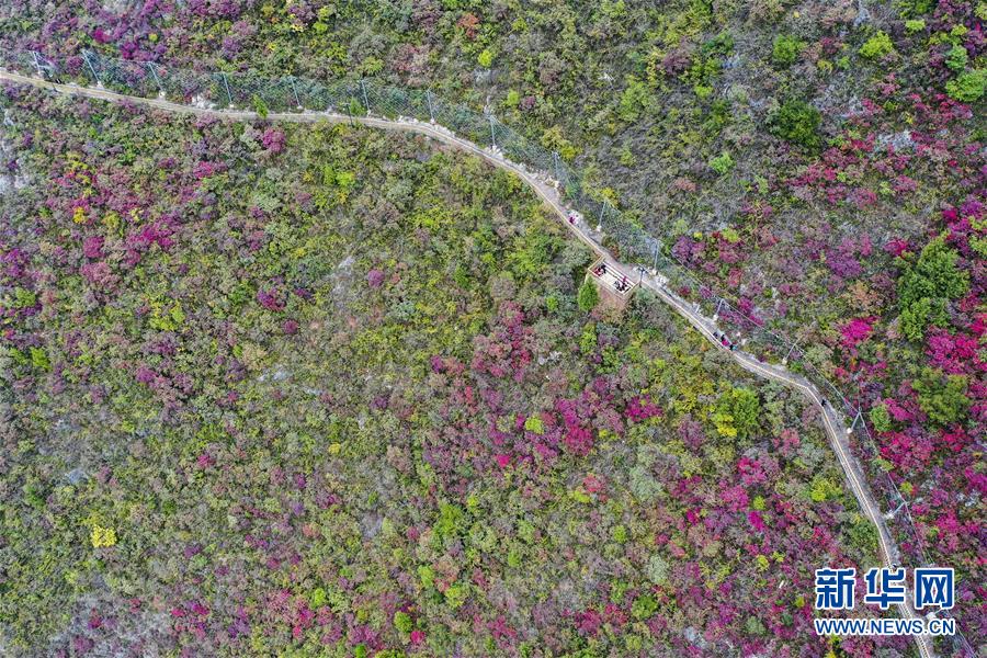 11月23日,游客在位于長(zhǎng)江巫峽段的巫山文峰景區(qū)游覽(無(wú)人機(jī)拍攝)。初冬時(shí)節(jié),位于重慶巫山縣境內(nèi)的長(zhǎng)江巫峽段呈現(xiàn)出一江碧水東流、兩岸層林盡染的秀美景象。新華社記者王全超攝