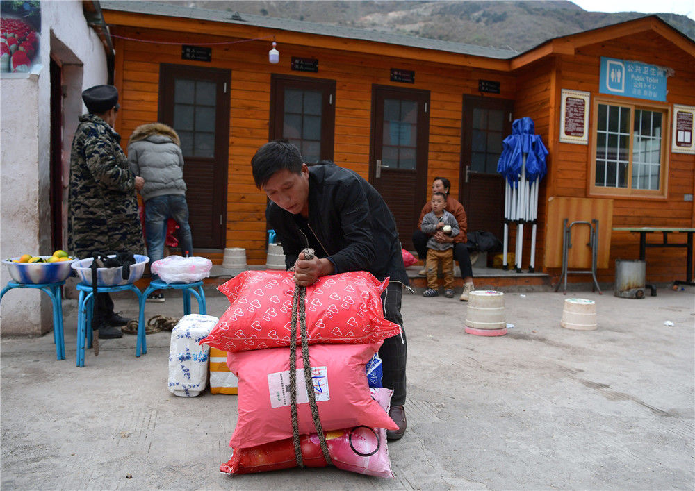 實(shí)拍懸崖村的“雙十一” 背著快遞包裹上天梯