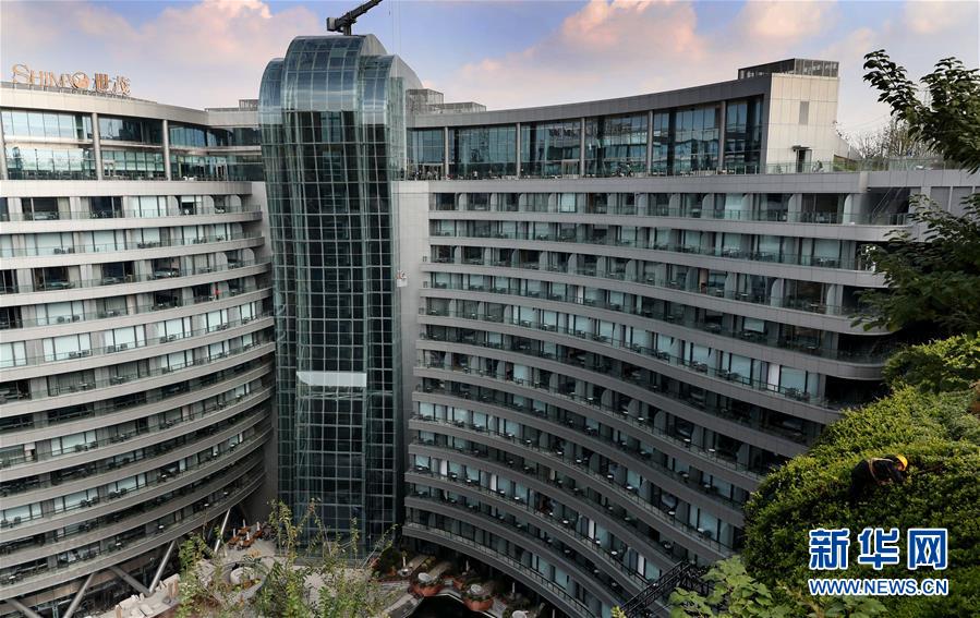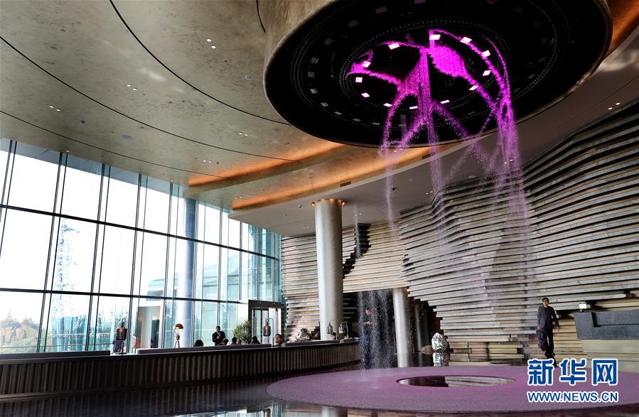 這是世茂洲際酒店大堂內的水幕裝置(11月13日攝)。新華社記者方喆攝