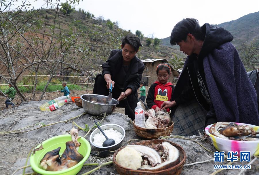 11月24日,在昭覺縣支爾莫鄉(xiāng)阿土列爾村,當?shù)鼐用駵蕚涫焓?、酒等食物祭祖,并相互贈送?1月20日至26日是四川省涼山彝族自治州大小涼山彝族群眾傳統(tǒng)節(jié)日——彝族年,懸崖上的阿土列爾村的彝族群眾殺年豬、祭祀和走親拜年,慶祝一年一度的彝族年。阿土列爾村是“懸崖村”,位于四川省涼山彝族自治州昭覺縣支爾莫鄉(xiāng),坐落在海拔1400-1600米山坳中,這里居住著60多戶彝族群眾,村民走出大山,需要攀爬懸崖。新華社記者江宏景攝