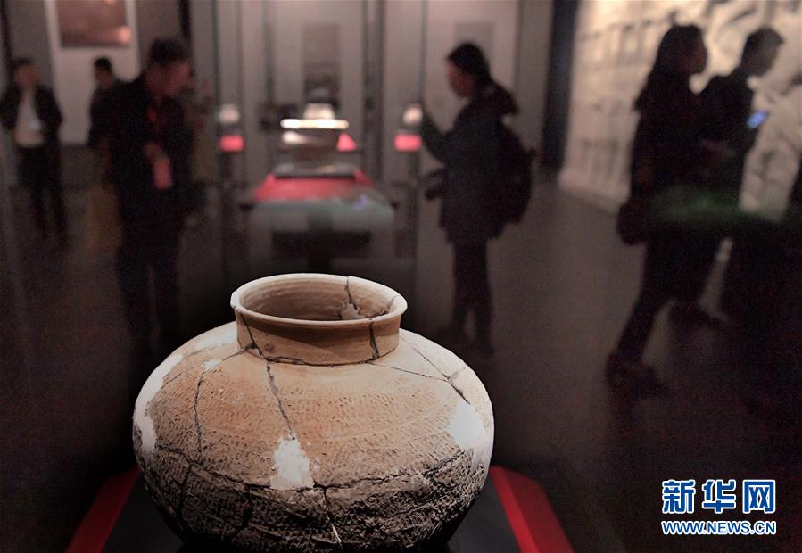 10月19日,參觀者在二里頭夏都遺址博物館內觀看展出的陶器。新華社記者李安攝