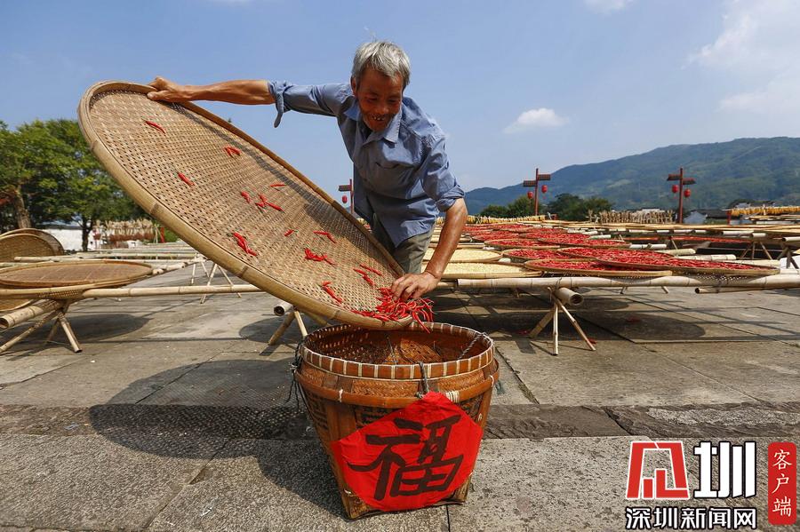 2019年9月9日,安徽黃山,呈坎古村村民在曬場上晾曬農作物。