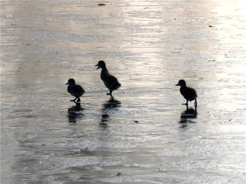 北京:玉淵潭野鴨寶寶“溜冰“戲水萌萌噠
