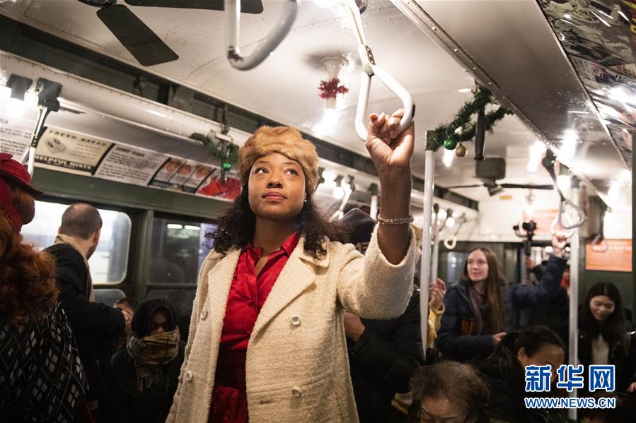 12月8日,在美國紐約,人們搭乘“懷舊專列”。每年感恩節(jié)到新年之間的星期日,紐約地鐵都會(huì)用1932年至1977年間使用的老式列車在運(yùn)營的線路上開行特別的“懷舊專列”,人們穿戴舊時(shí)服飾專程前來搭乘,體驗(yàn)時(shí)光回溯的奇妙旅程。新華社記者王迎攝