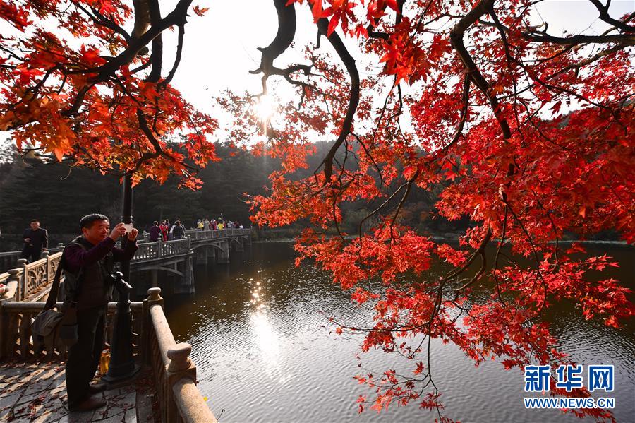 11月17日,游客在廬山如琴湖邊游玩。初冬時節(jié),江西廬山風景區(qū)層林盡染,火紅的楓葉吸引眾多游客前來參觀,令人流連忘返。新華社記者胡晨歡攝