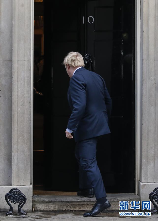 12月13日,在英國倫敦,英國首相、保守黨領袖鮑里斯·約翰遜從白金漢宮返回唐寧街10號首相府。 保守黨領袖鮑里斯·約翰遜13日在率領保守黨贏得英國議會下院選舉后,正式就任英國首相。約翰遜當天依慣例前往白金漢宮,接受英國女王伊麗莎白二世的邀請組建新一屆內(nèi)閣。 新華社記者 韓巖 攝