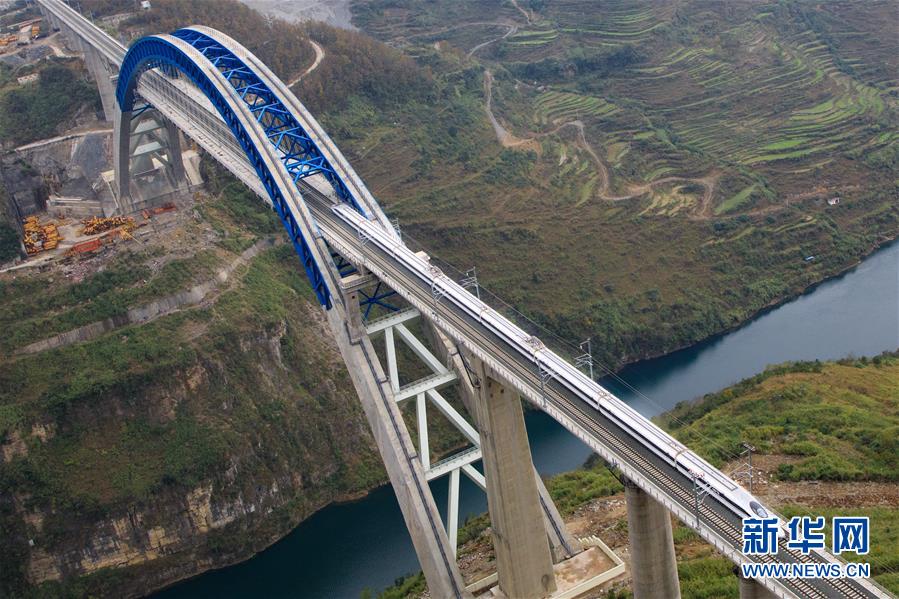 12月2日,一輛試驗(yàn)列車駛過成貴高鐵鴨池河特大橋。當(dāng)日,正在進(jìn)行聯(lián)調(diào)聯(lián)試的成貴高鐵進(jìn)入全線拉通空載模擬運(yùn)行階段,試驗(yàn)列車將在成都到貴陽區(qū)間內(nèi)全線路運(yùn)行。線路全長(zhǎng)650公里的成貴高鐵是我國“八縱八橫”高速鐵路網(wǎng)的重要組成部分,設(shè)計(jì)時(shí)速為250公里。新華社記者劉續(xù)攝