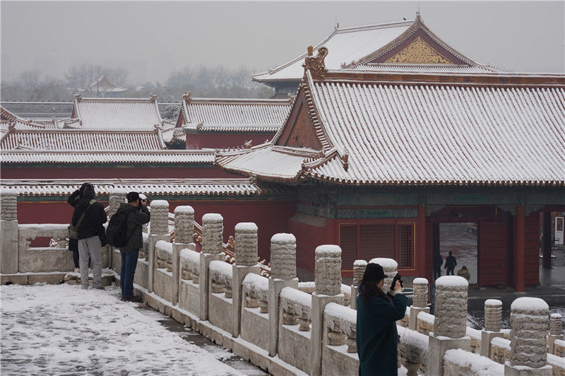 2019年11月30日,北京,初雪過(guò)后,故宮美景如畫,吸引大批游客前來(lái)“打卡”。