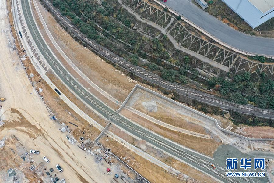 這是12月17日無人機拍攝的改貌鐵路口岸。  新華社記者 劉續(xù) 攝