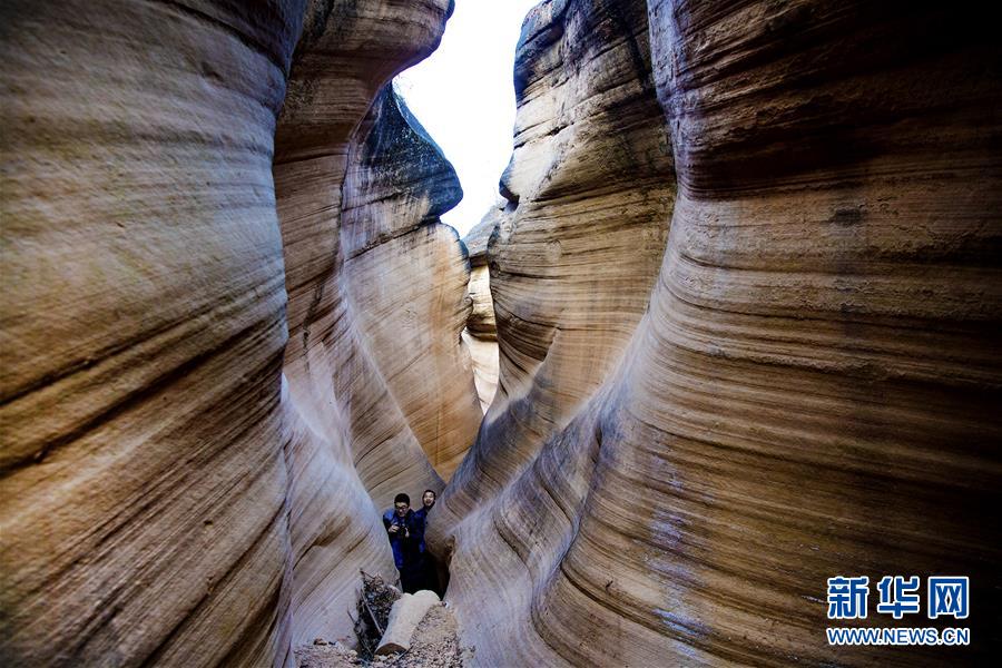 12月17日,游人在志丹縣雙河鎮(zhèn)毛項(xiàng)峽谷內(nèi)游覽。毛項(xiàng)峽谷位于陜西省延安市志丹縣雙河鎮(zhèn)毛項(xiàng)村,峽谷全長(zhǎng)12公里,分為9段,曲折綿延,谷內(nèi)石壁凹凸不平,其中最窄處只能容一人側(cè)身通過(guò),堪稱(chēng)黃土高原上的自然奇觀。新華社記者陶明攝