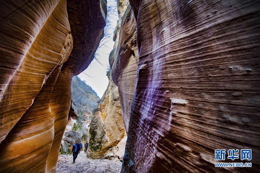 12月17日,游人在志丹縣雙河鎮(zhèn)毛項峽谷內(nèi)游覽。新華社記者陶明攝