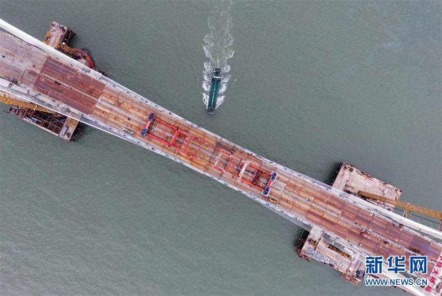 福平鐵路平潭海峽公鐵兩用大橋元洪航道橋主橋正在合龍(6月5日攝)。新華社記者林善傳攝