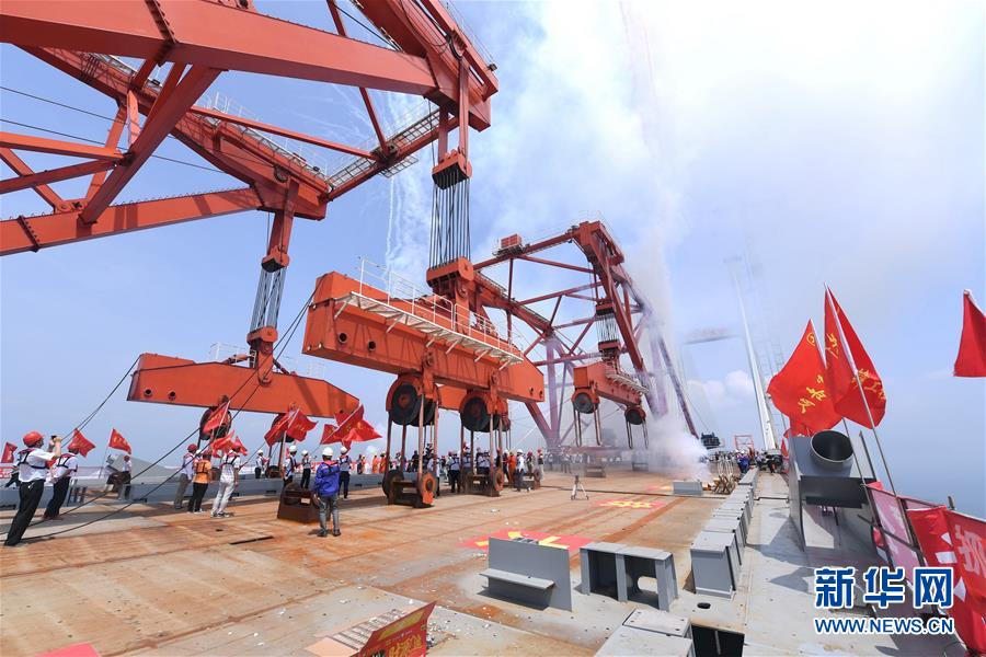 6月5日,福平鐵路平潭海峽公鐵兩用大橋元洪航道橋主橋正式合龍。新華社記者林善傳攝