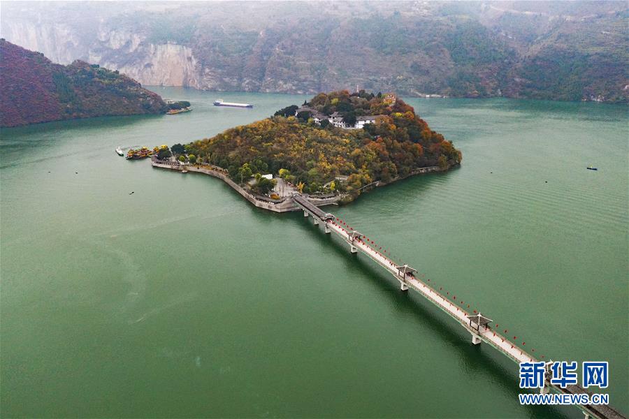 2019年11月2日,重慶,俯瞰三峽蓄水之后的“白帝城孤島”全貌。