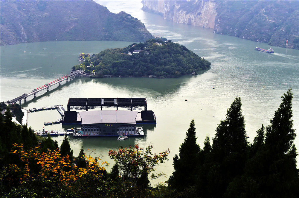 2019年11月3日,重慶,四面環(huán)水的“白帝城孤島”風(fēng)貌,各種豪華游輪陸續(xù)駛往寶塔坪旅游碼頭,供游客們登島參觀。