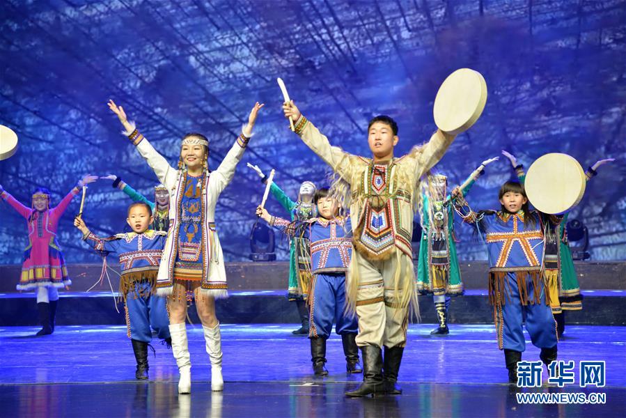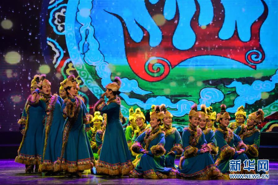 12月22日,演員在表演歌舞《敖魯古雅》。 當(dāng)日,冰雪之約——喜迎“十四冬”惠民文藝演出在呼倫貝爾大劇院舉行,為觀眾呈現(xiàn)一場“歌舞盛宴”。 新華社記者 徐欽 攝