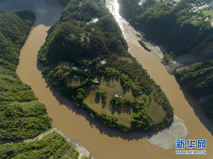 這是4月27日在云南省貢山獨(dú)龍族怒族自治縣丙中洛鎮(zhèn)拍攝的“怒江第一灣”(無(wú)人機(jī)拍攝)。新華社記者江文耀攝