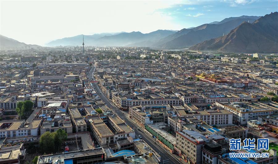 鳥瞰拉薩古城(8月10日無人機(jī)拍攝)。新華社記者李鑫攝