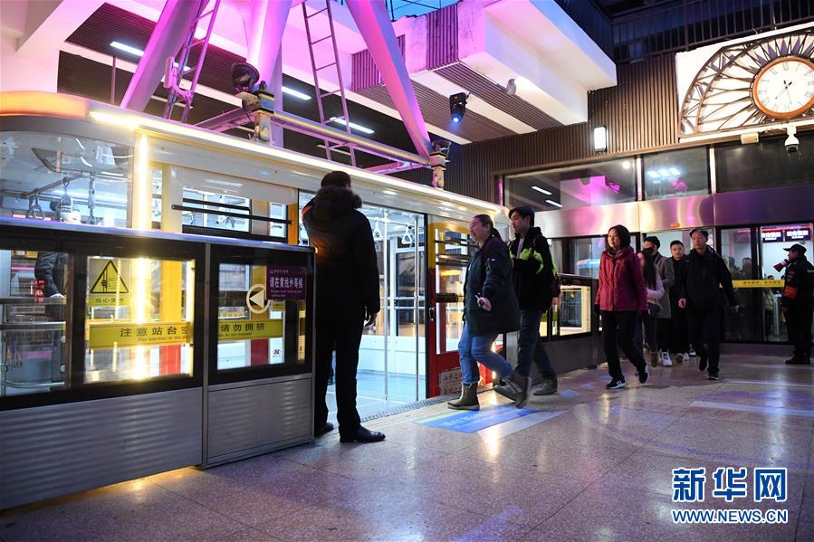 12月23日,前來(lái)體驗(yàn)的游客排隊(duì)進(jìn)入索道轎廂。新華社記者唐奕攝