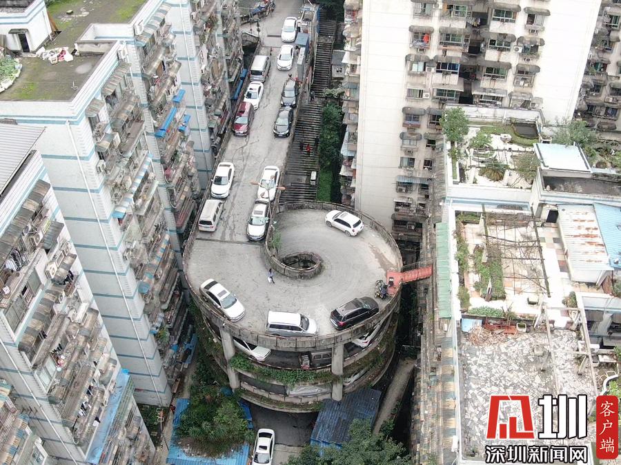 2019年10月29日?qǐng)?bào)道,近日,重慶,航拍,重慶一小區(qū)的五層“螺旋”停車場(chǎng),吸引民眾前往體驗(yàn)找刺激。據(jù)了解,該停車場(chǎng)從路面到地下共五層,進(jìn)入車庫(kù)的司機(jī)需要轉(zhuǎn)360度圈才能到達(dá)每一層樓的車位。