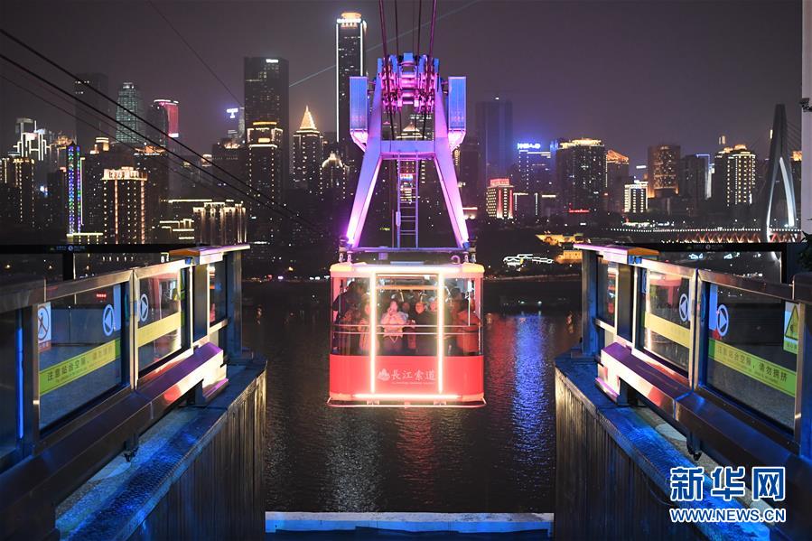 12月23日,“長江索道”在重慶夜空中運行。新華社記者唐奕攝