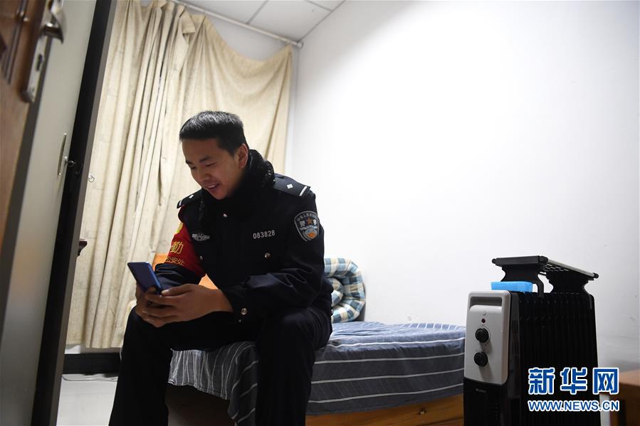 12月18日,常曉龍?jiān)隈v地宿舍與妻子視頻交流。新華社記者劉軍喜攝