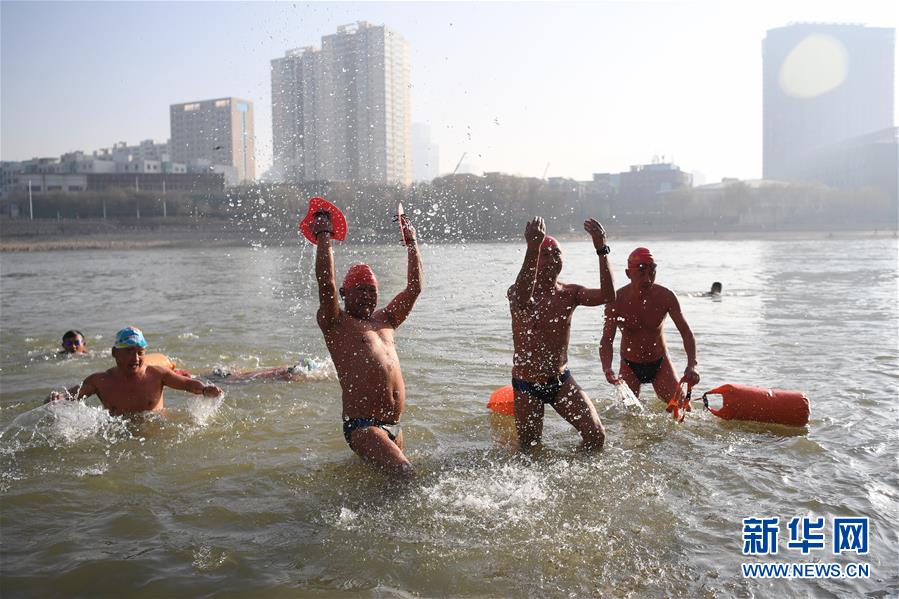 12月18日,冬泳愛(ài)好者準(zhǔn)備進(jìn)入黃河開(kāi)始冬泳。新華社記者馬寧攝