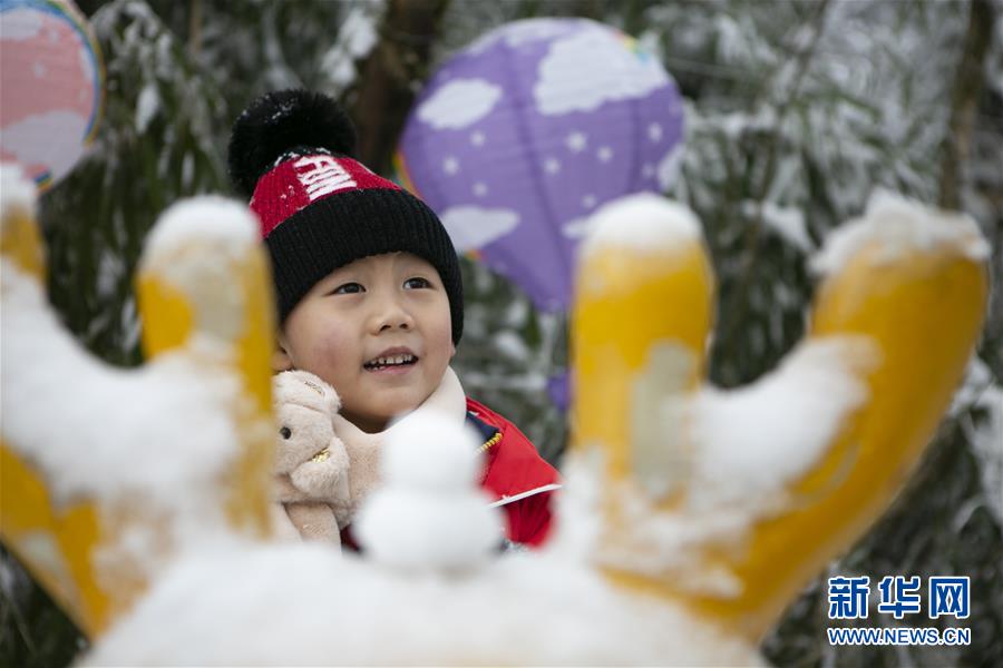 12月28日,小朋友在峨眉山風(fēng)景名勝區(qū)玩雪。新華社記者李夢馨攝