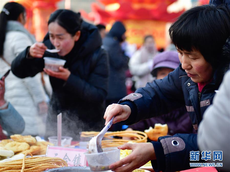 1月2日,兩位市民在閬中古城貢院廣場吃臘八粥。 當(dāng)日是農(nóng)歷臘月初八臘八節(jié),四川閬中古城舉行“萬人同品臘八粥”活動,當(dāng)?shù)鼐用窈捅姸嘤慰驮谪曉簭V場免費(fèi)享用臘八粥。 新華社記者 江宏景 攝
